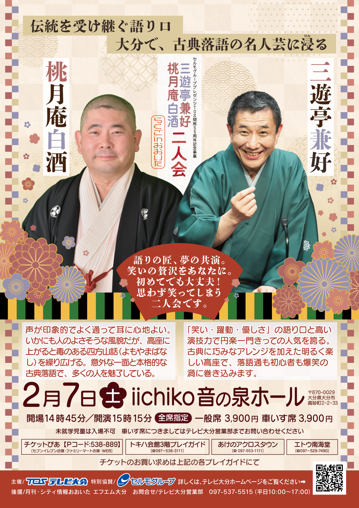 セルモグループプレゼンツ TOS開局55周年記念事業 らくごinおおいた 桃月庵白酒 三遊亭兼好 二人会