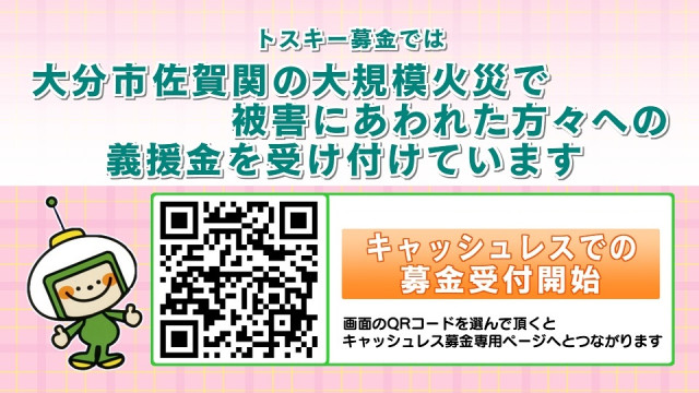 大分市佐賀関地域大規模火災への「トスキー募金」キャッシュレス募金も受付開始!