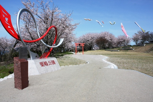 海に突き出た岩窟に社が設けてられているという全国的にも珍しい神社が粟嶋社。縁結び、安産の神としても有名。高さ8mの木製展望台から夕陽と満開のさくらを満喫できる。