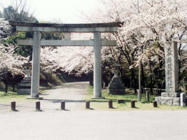 護國神社は、大分市中央部の小山、松栄の中腹に社地を構える明治8年創建の招魂社で、大分市の臨海工業地帯を一望できるスポット。およそ500本の桜がある“桜並木”でも知られている。大分市が2006年に実施した「私が選ぶおおいた100景」のアンケート第3位。