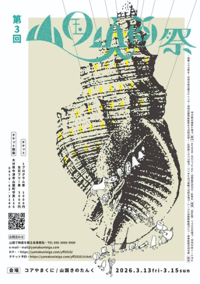 大分県中津市山国町コアやまくににてインディーズ映画×ローカリティにフォーカスを当てる第三回山国映画祭を開催。優秀作品5作品、佳作6作品の上映&各優秀作品関係者によるトークイベント。レトロな温泉宿を改装したマイクロシアター&カフェバー「山国きのたんく」では、短編自主映画47作品の上映。前回グランプリの相馬大輝監督による新作長編『映画という現実へ』を上映。