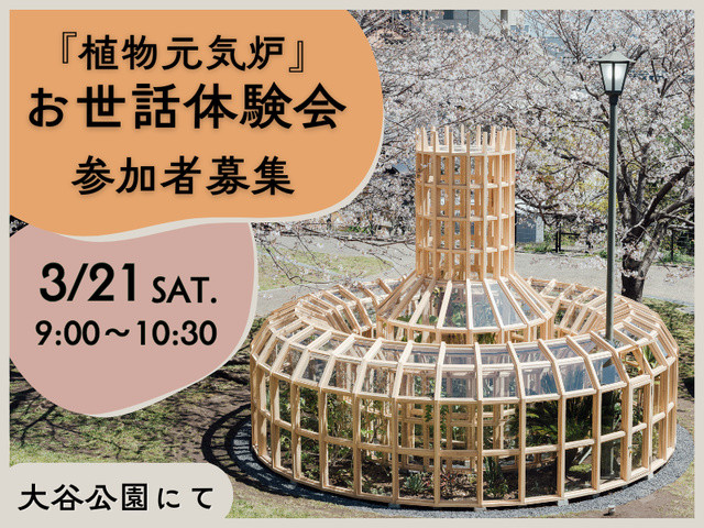2024年にアーティスト栗林 隆が制作した植物園型アート作品「植物元気炉」の植物のお世話を体験できるイベントを開催。「植物元気炉」のお世話をサポートする「にわばんさん」も同時に募集。予約不要。手ぶらでOK。参加者にはプレゼントを贈呈。詳細はwebサイトを参照。