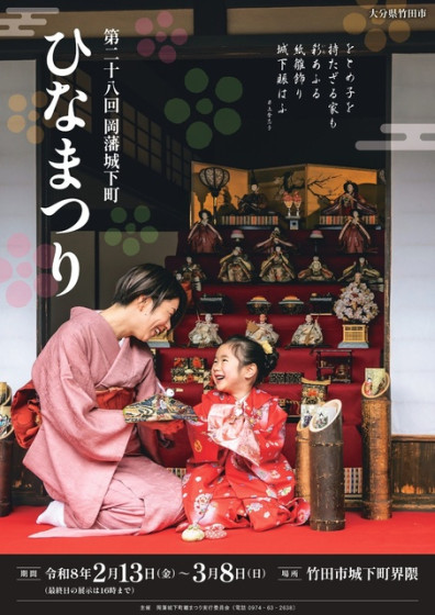 大分県竹田市の城下町界隈の商家などに古くから伝わるひな人形や、竹灯籠の中に折り紙のオリジナル雛を飾った「竹雛」が並び、一足早く春の訪れを感じることができる。期間中は「ひいなあそび」や竹田市ならではの「竹雛づくり体験」等、さまざまな関連イベントも開催予定。詳しくは公式サイトで確認を。