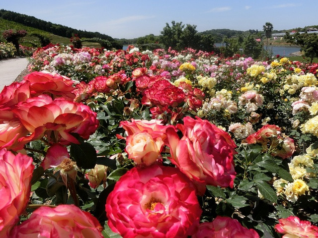 千財農園のバラ園にて色鮮やかに咲き誇る2500本のバラが、天然の香水となって5000平方メートルの広大な敷地を包み込む。家族や友達を誘って出かけよう!