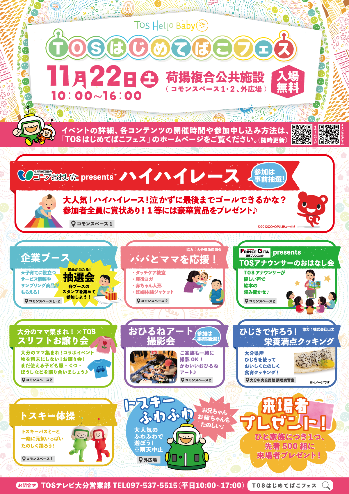 ‶大分に生まれてきてくれてありがとう” TOSは、これからたくさんの「はじめて」に出会う、パパ・ママ・赤ちゃんに「はじめてばこ」を届けています。