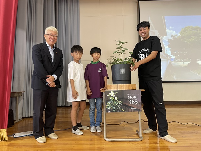 贈呈した植物は小学校で1年間育てられたあと、坂ノ市地域に植えられる予定です。