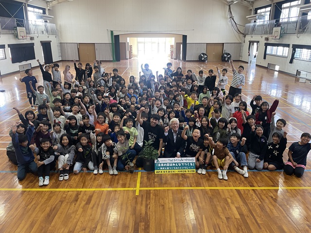 森林を守ることの大切さを伝える講演会を10月28日に大分市の坂ノ市小学校で開催し、5年生およそ150人に参加いただきました。
